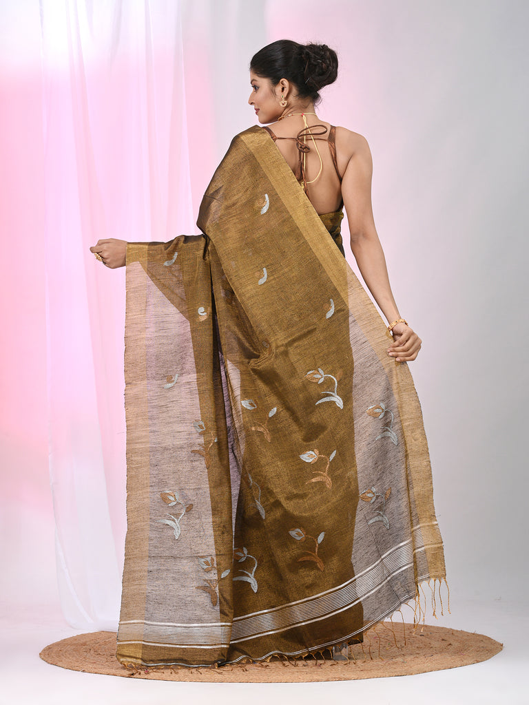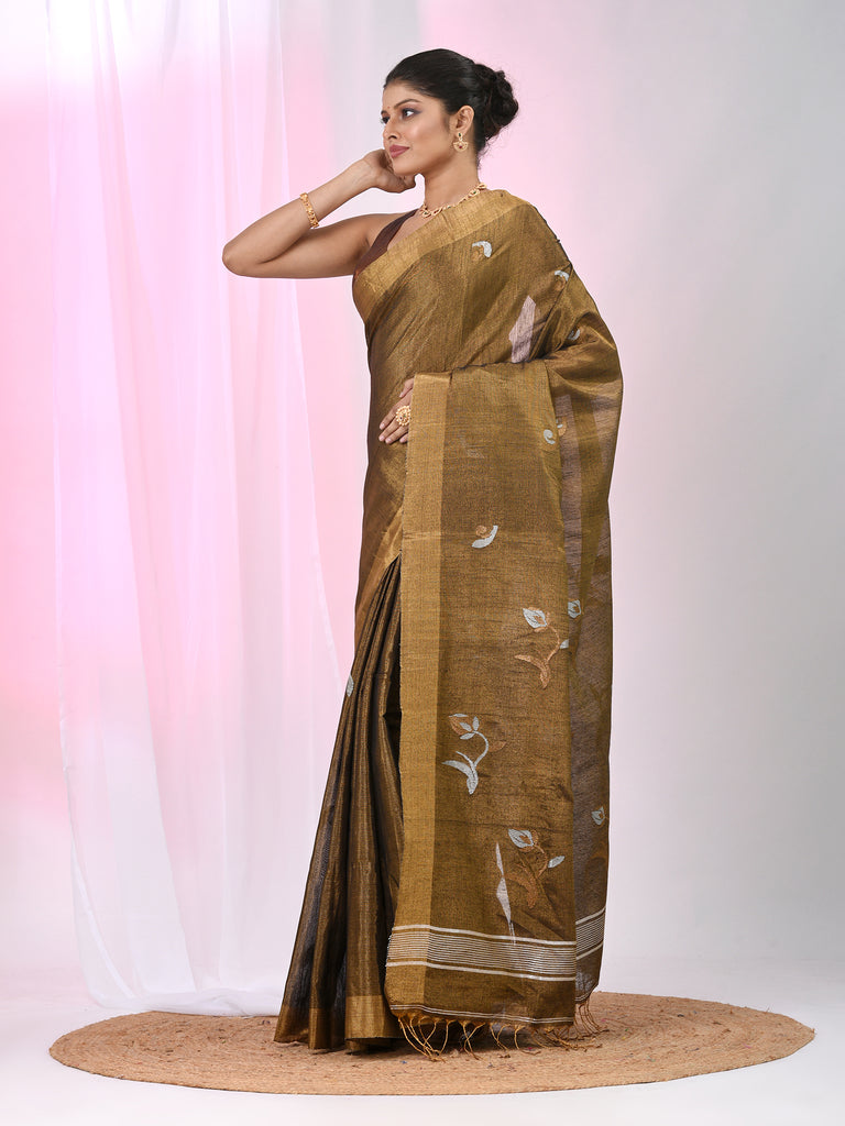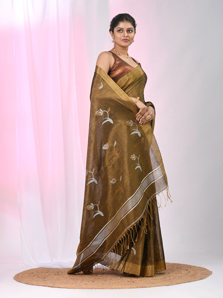 Metallic Tissue Saree with Ethnic Motifs and Golden Border