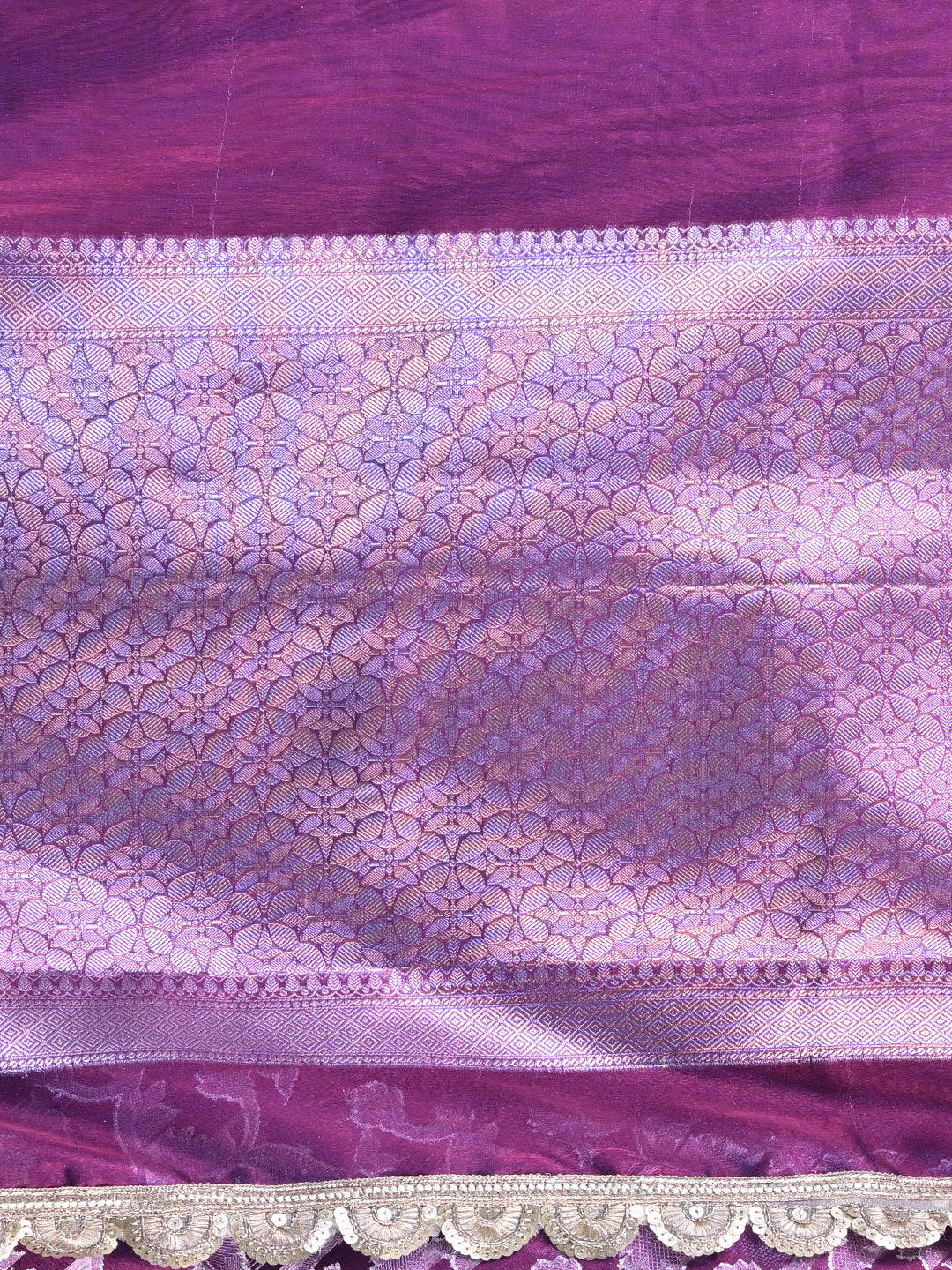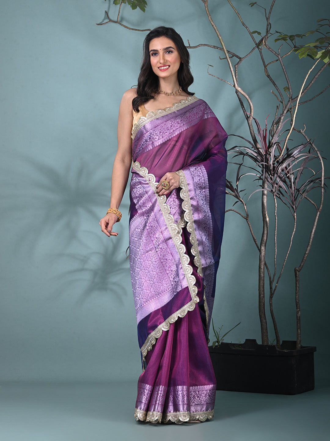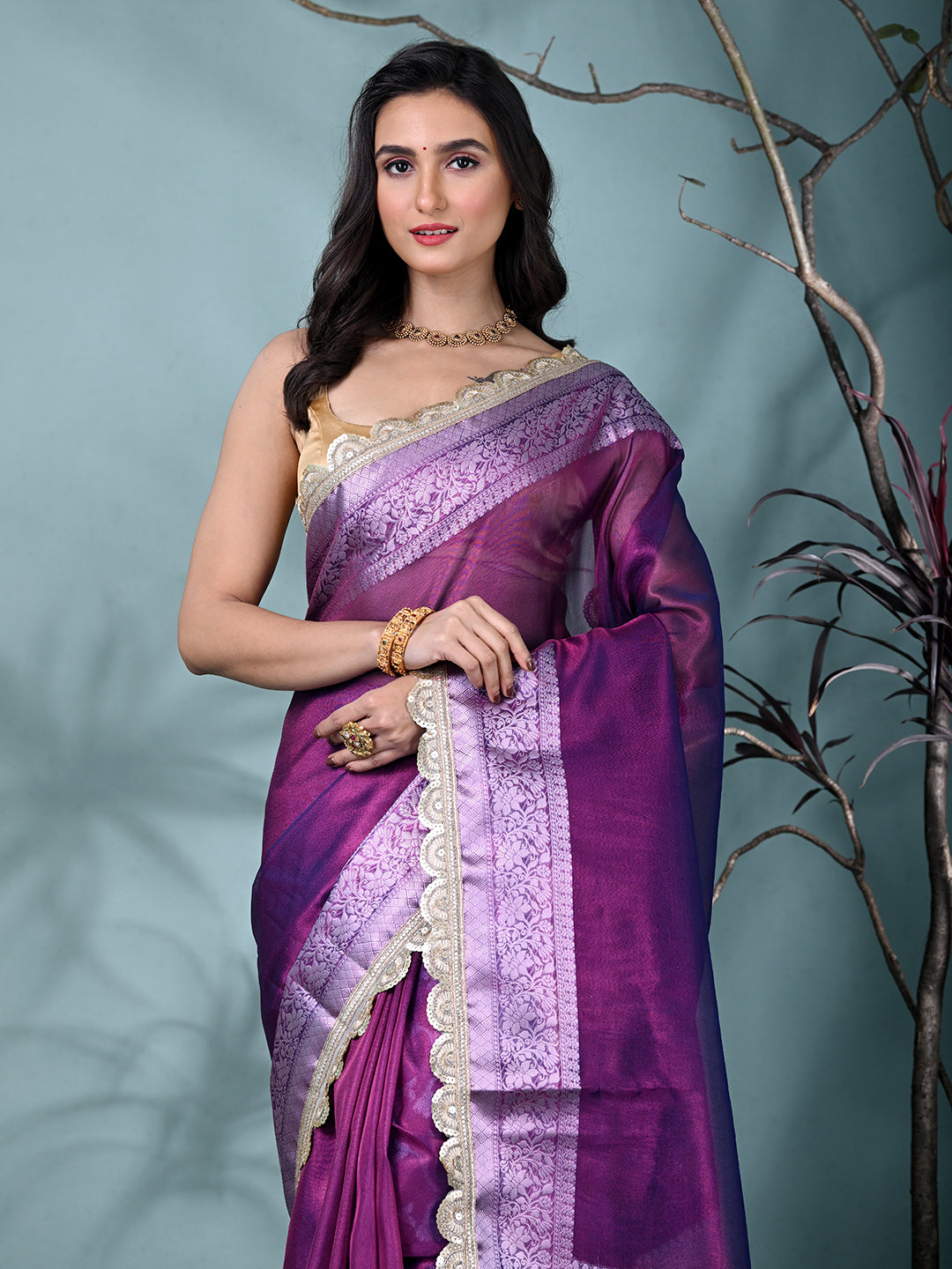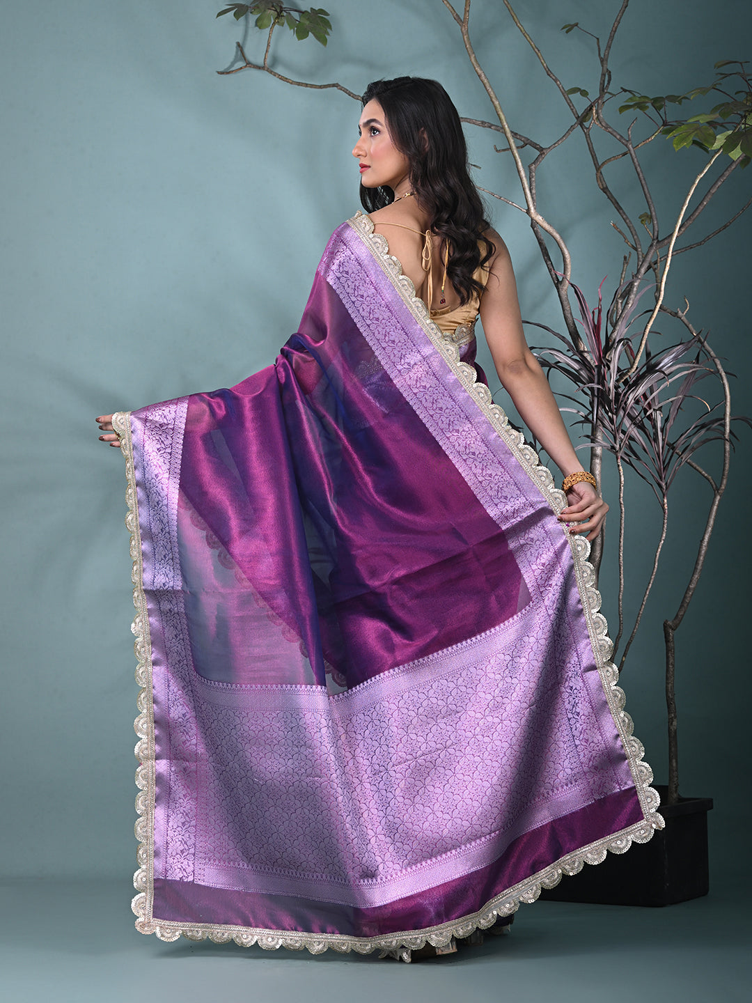 Purple Tissue Saree with Gotapatti Detailing and Elegant Border