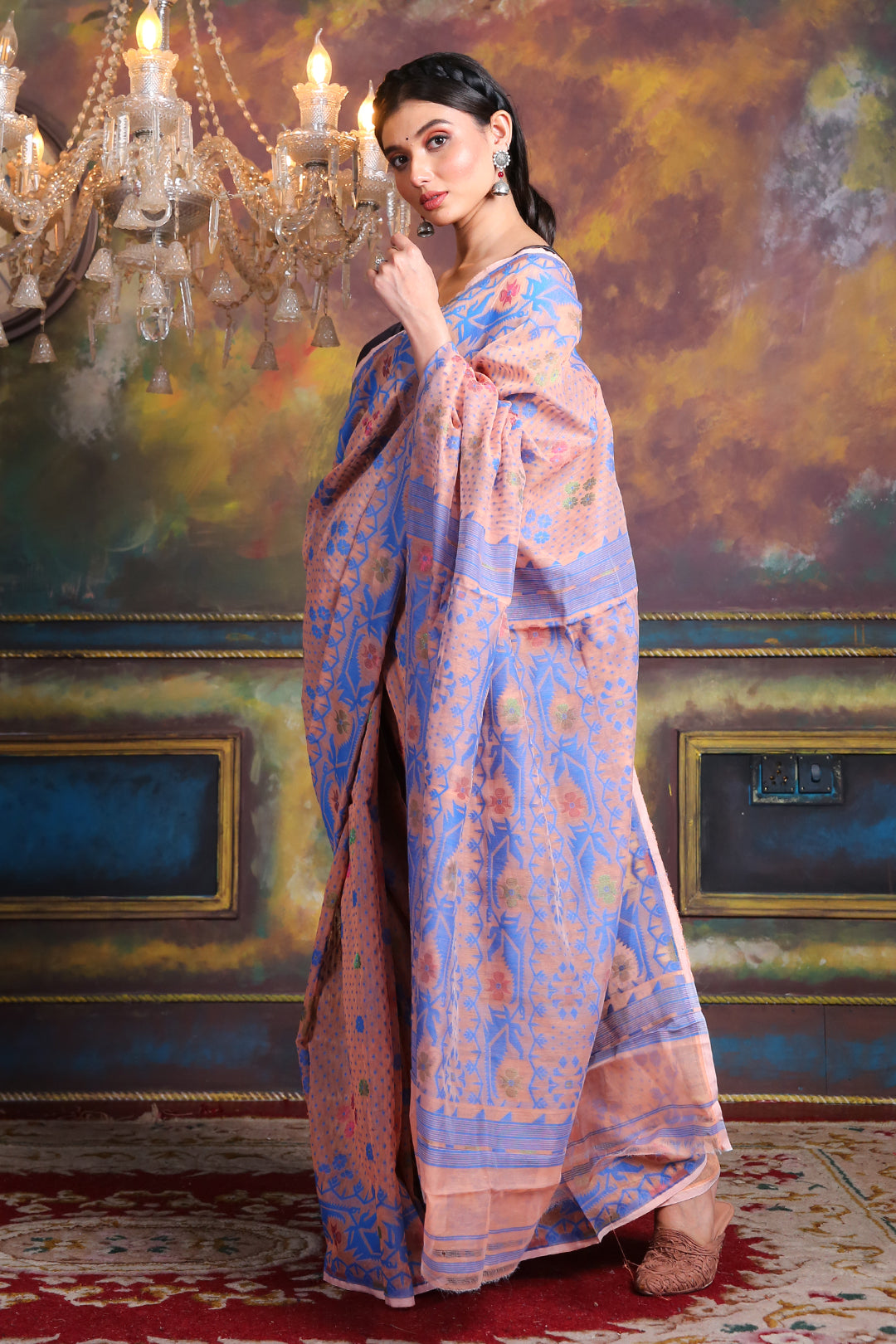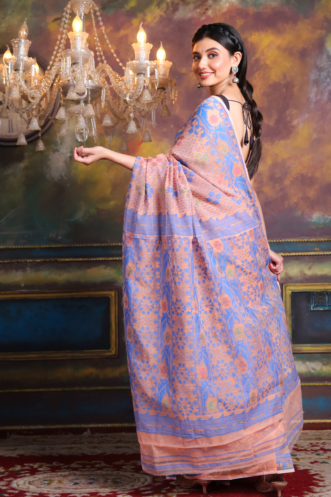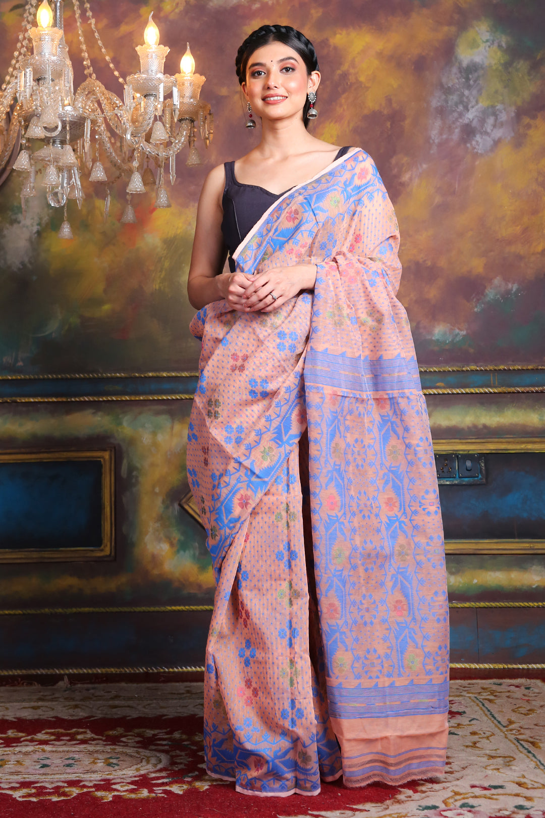 Allover Buta Weaving Peach Jamdani Saree