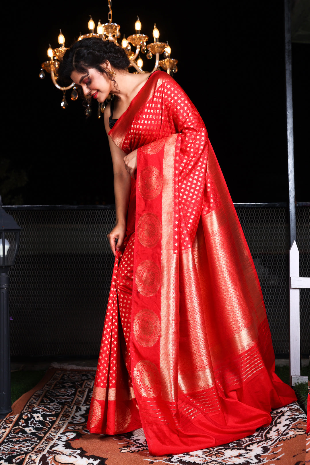 Allover Butta Weaving Red Silk Saree