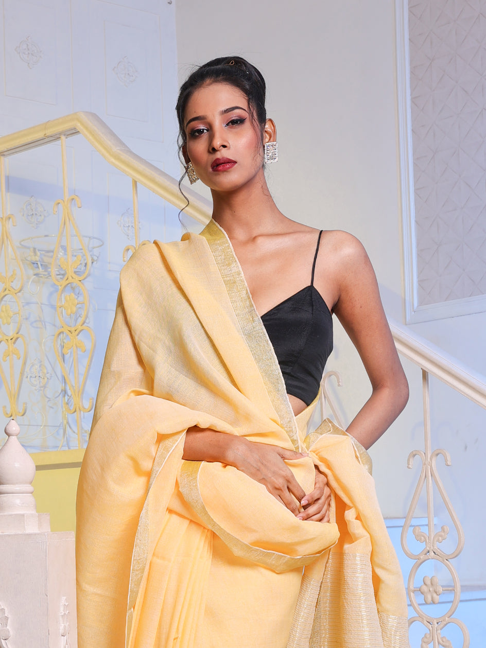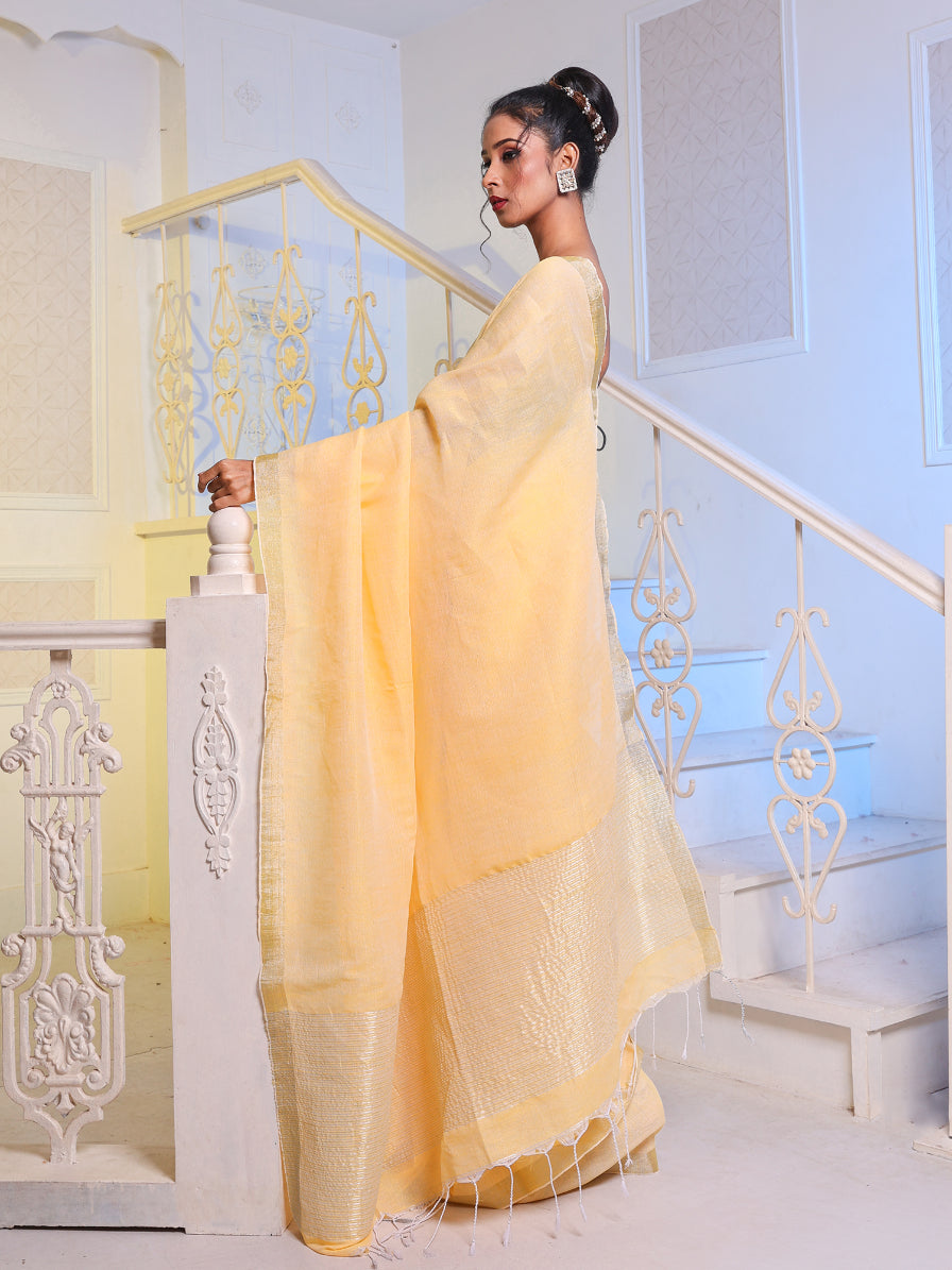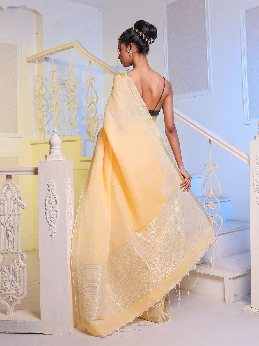 Banana Yellow Linen Handwoven Saree With Zari Woven Stripes Pallu