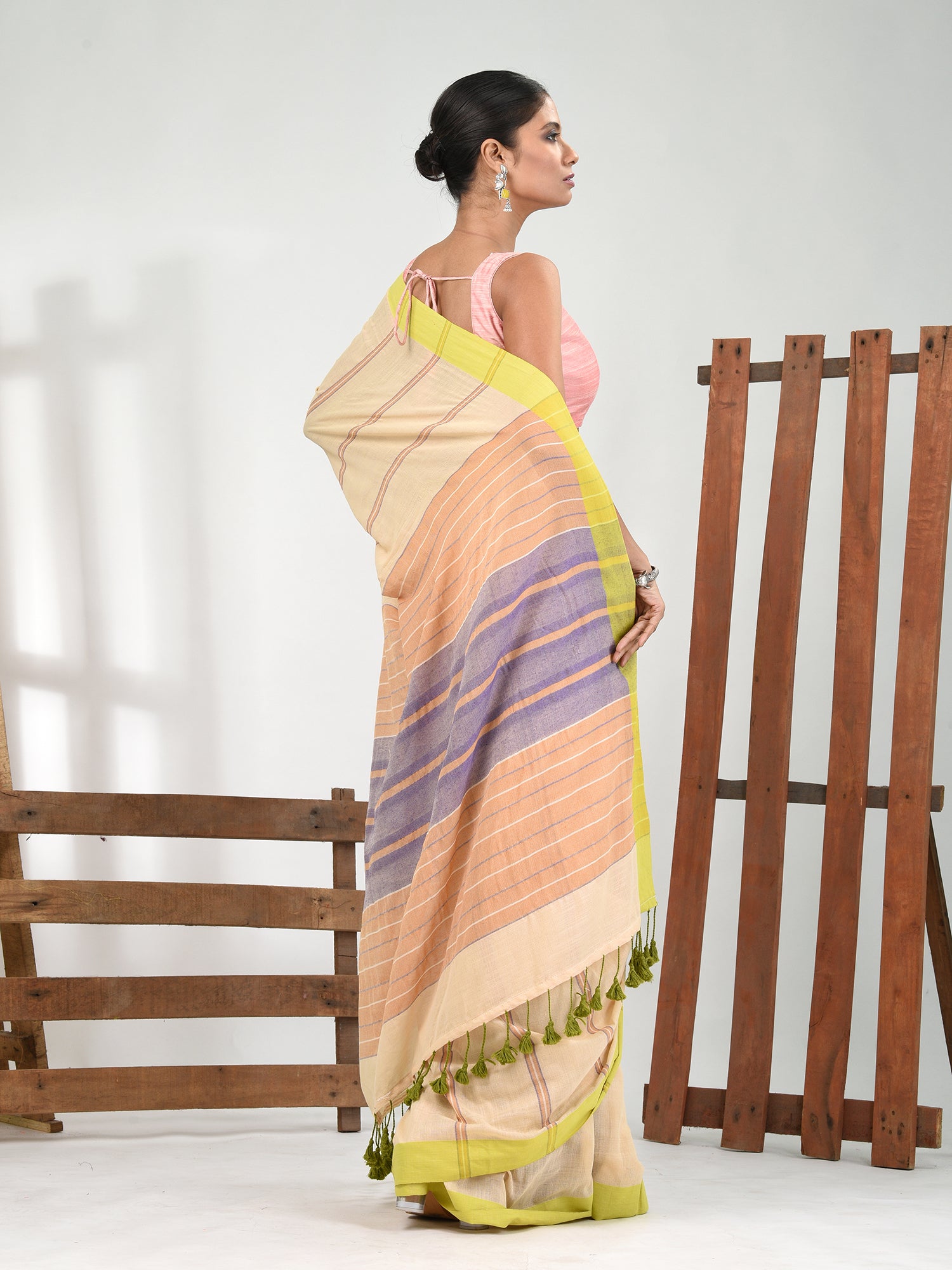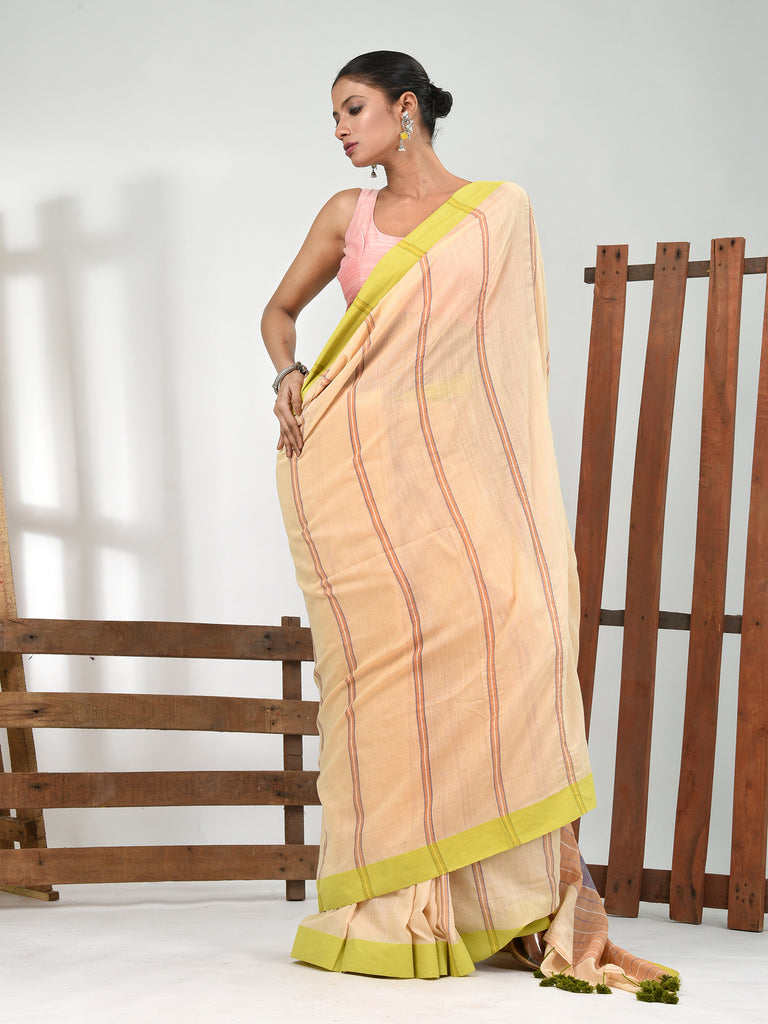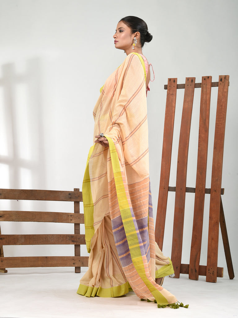 Indulge in sophisticated comfort with Beige Cotton Soft Saree With Stripe Pattern, a fusion of softness and elegance. Combine it with a stylish blouse for a modern touch or enhance it with statement jewelry for a touch of glamour.