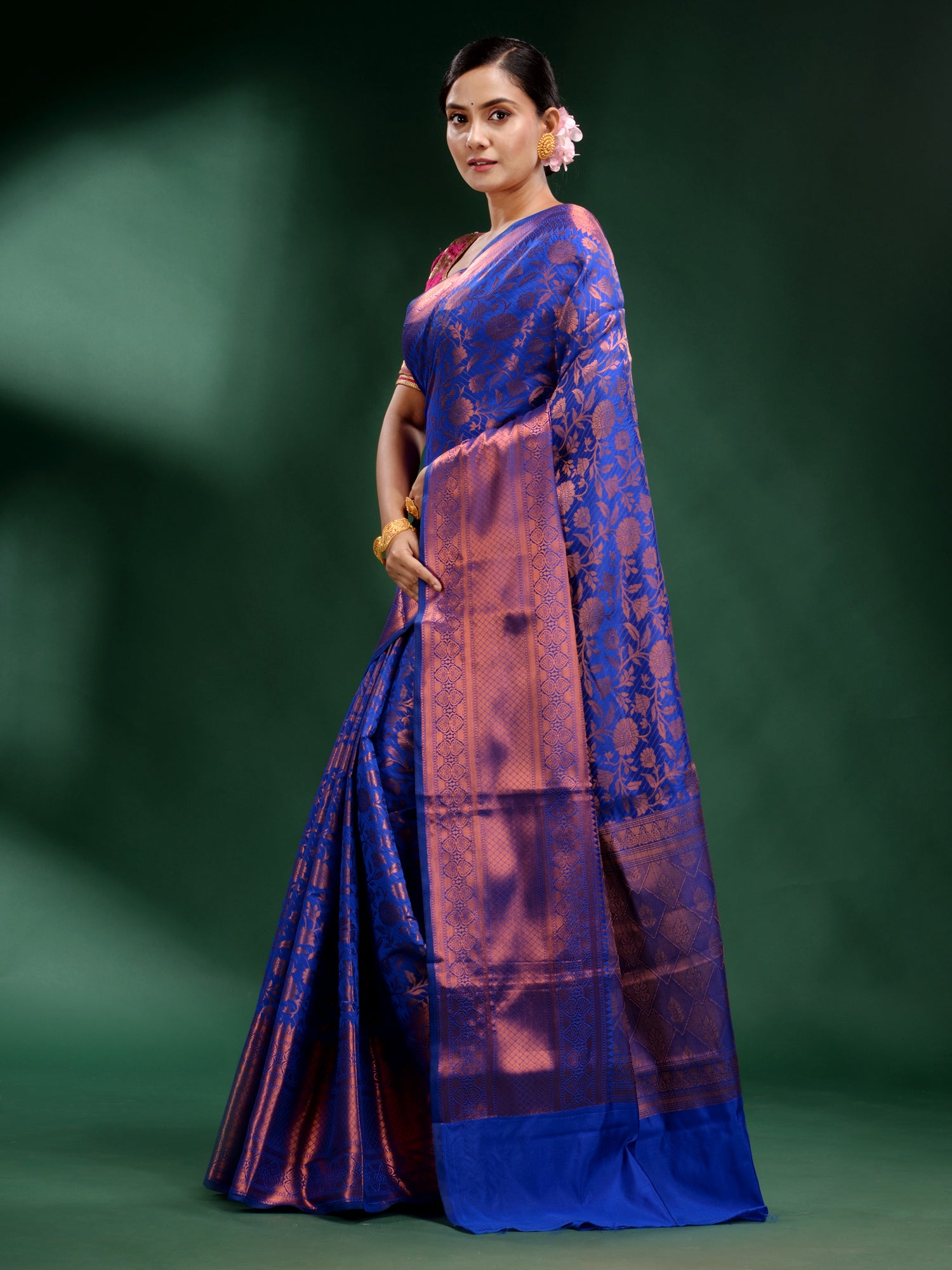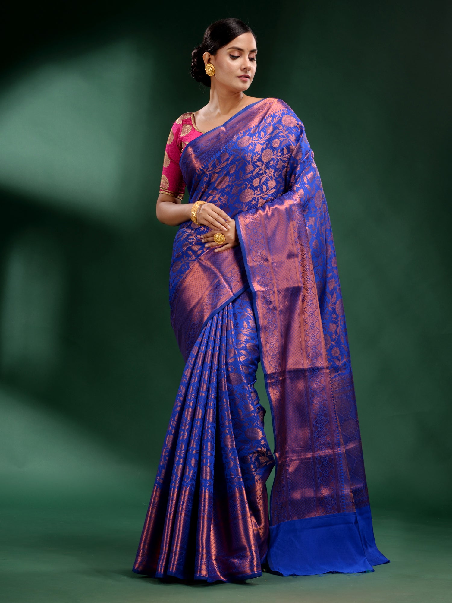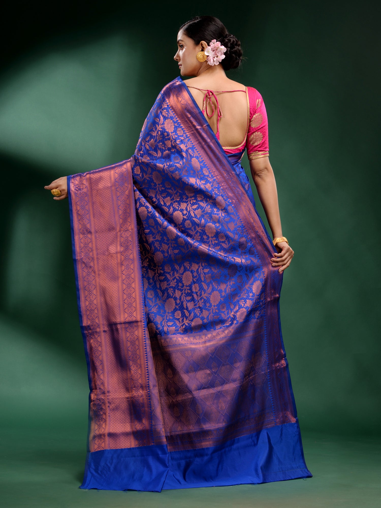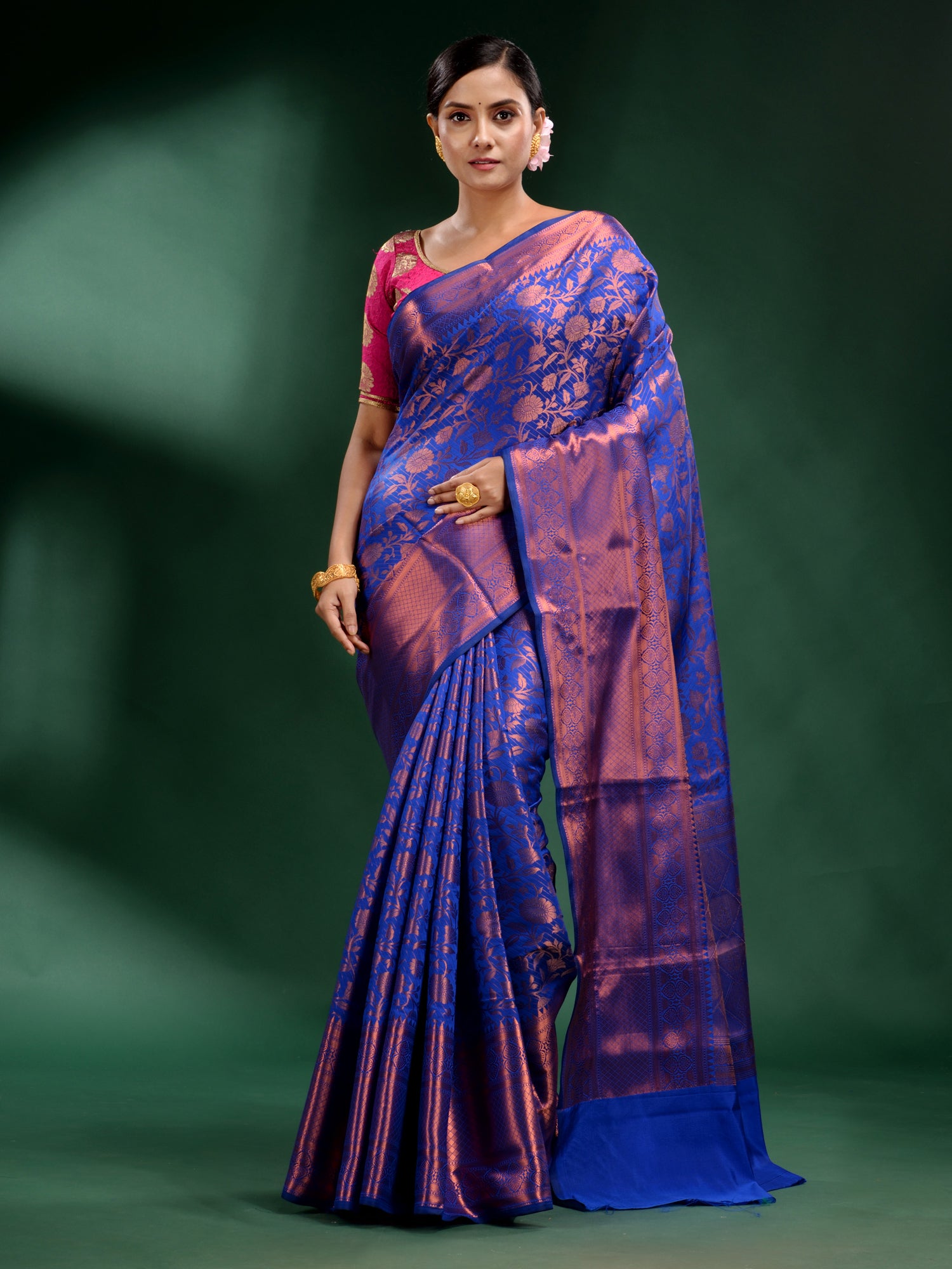 Blue Silk Handwoven Soft Saree With Nakshi Design