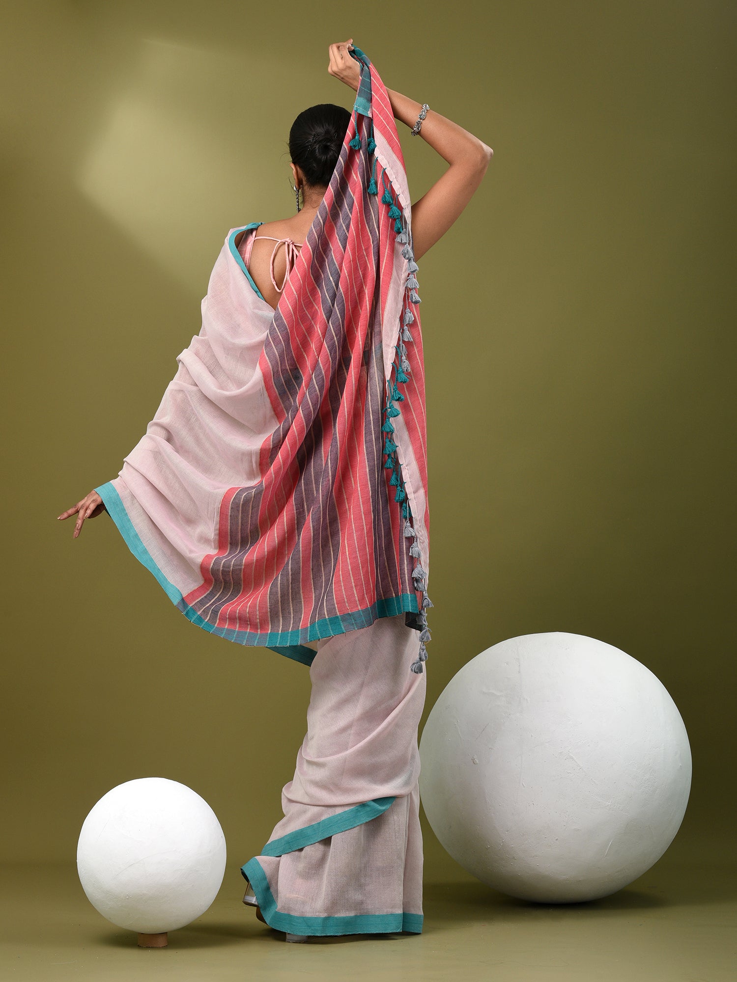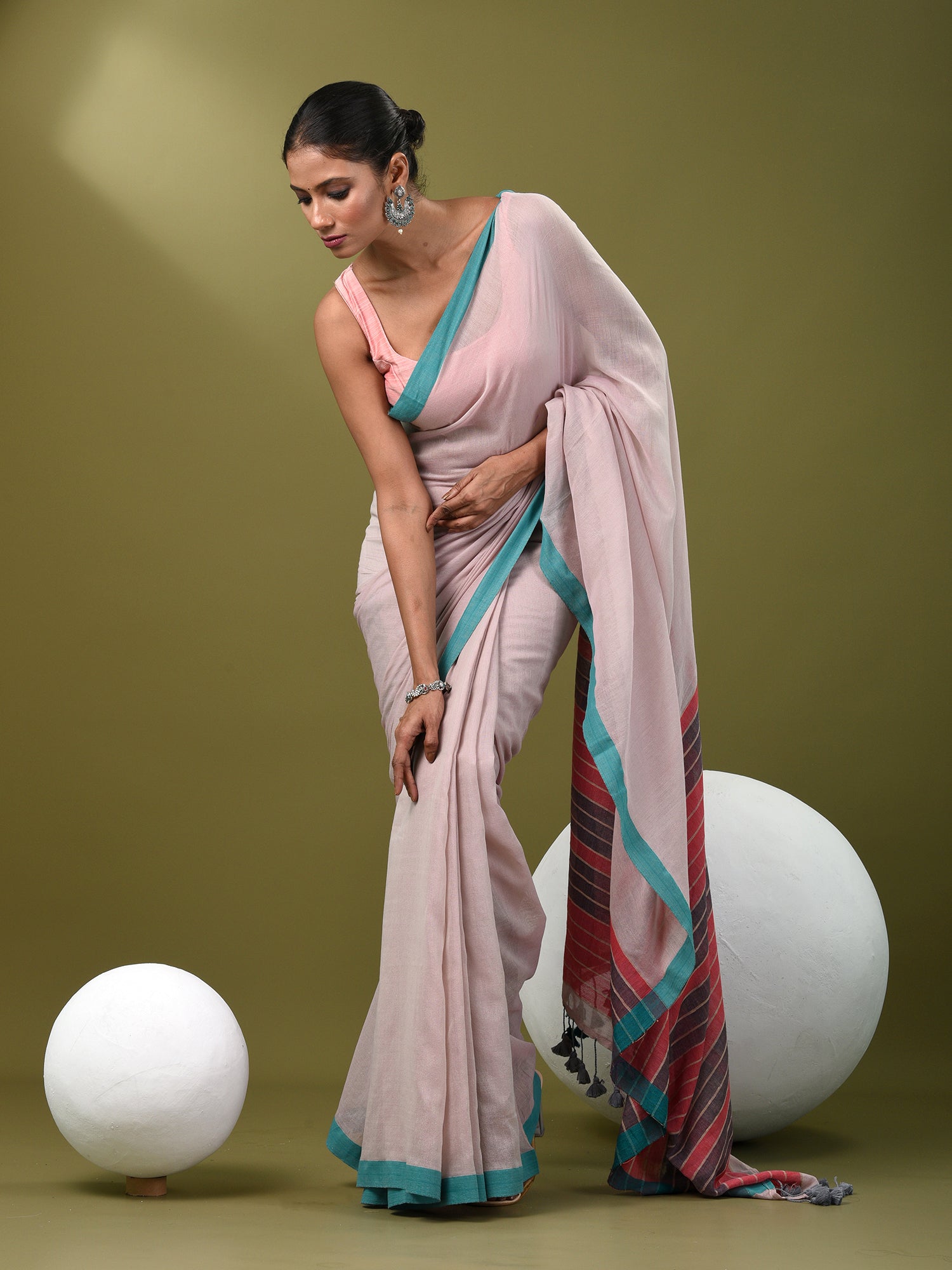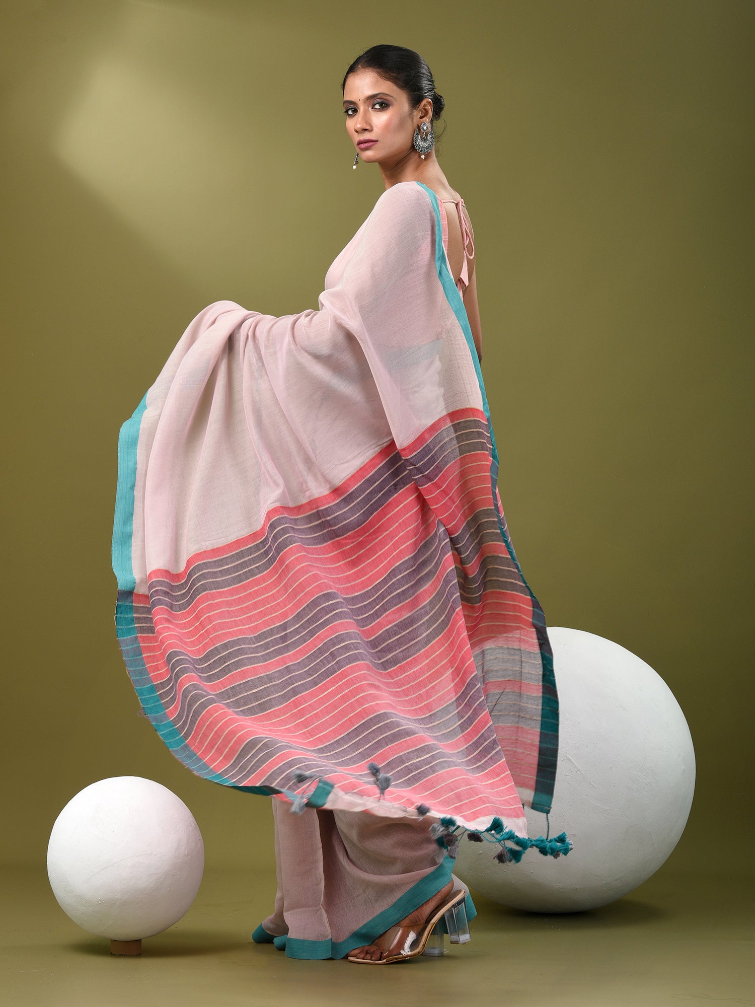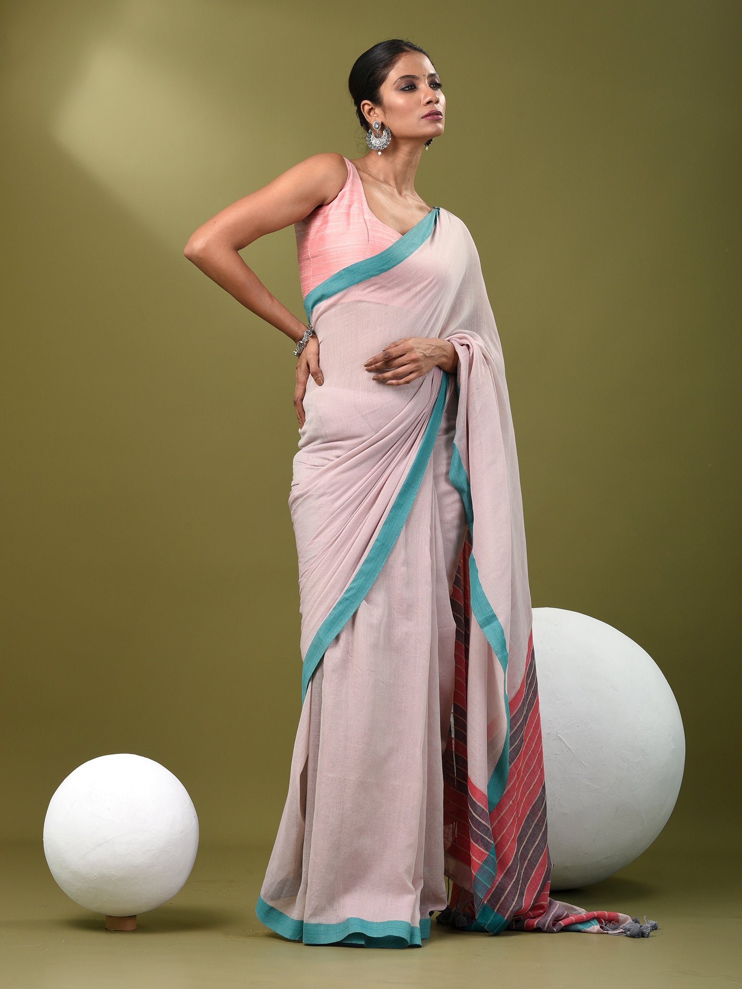 Ecru Cotton Soft Saree With Solid Pattern
