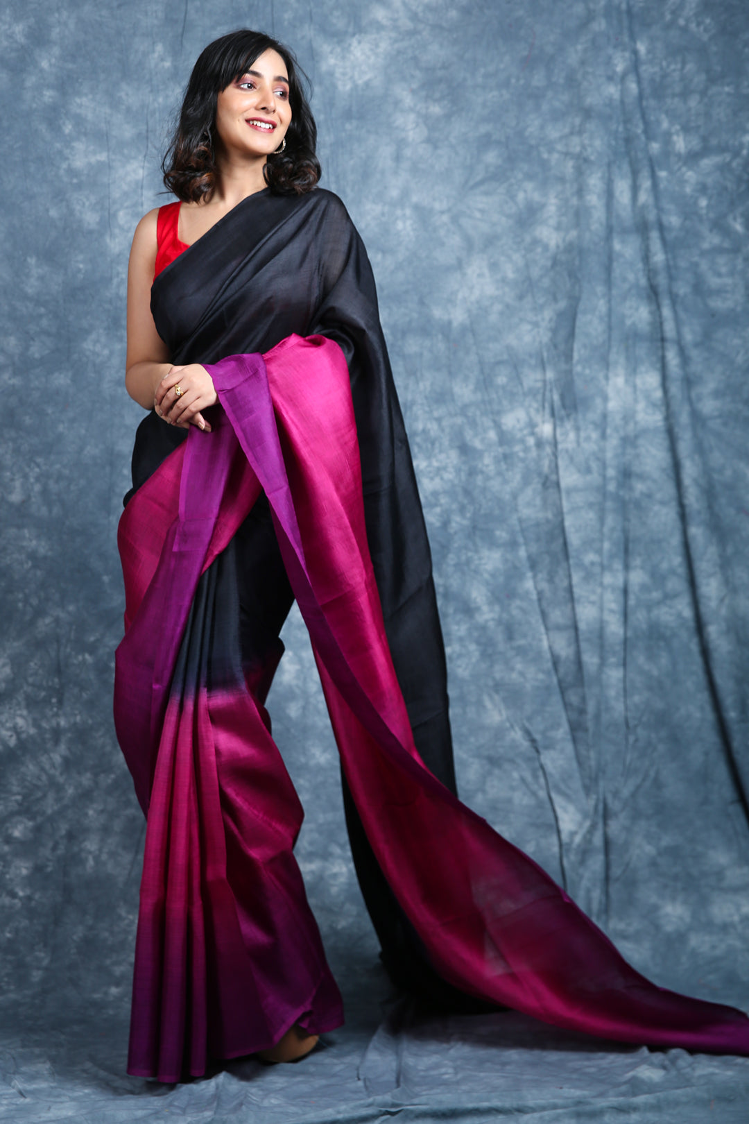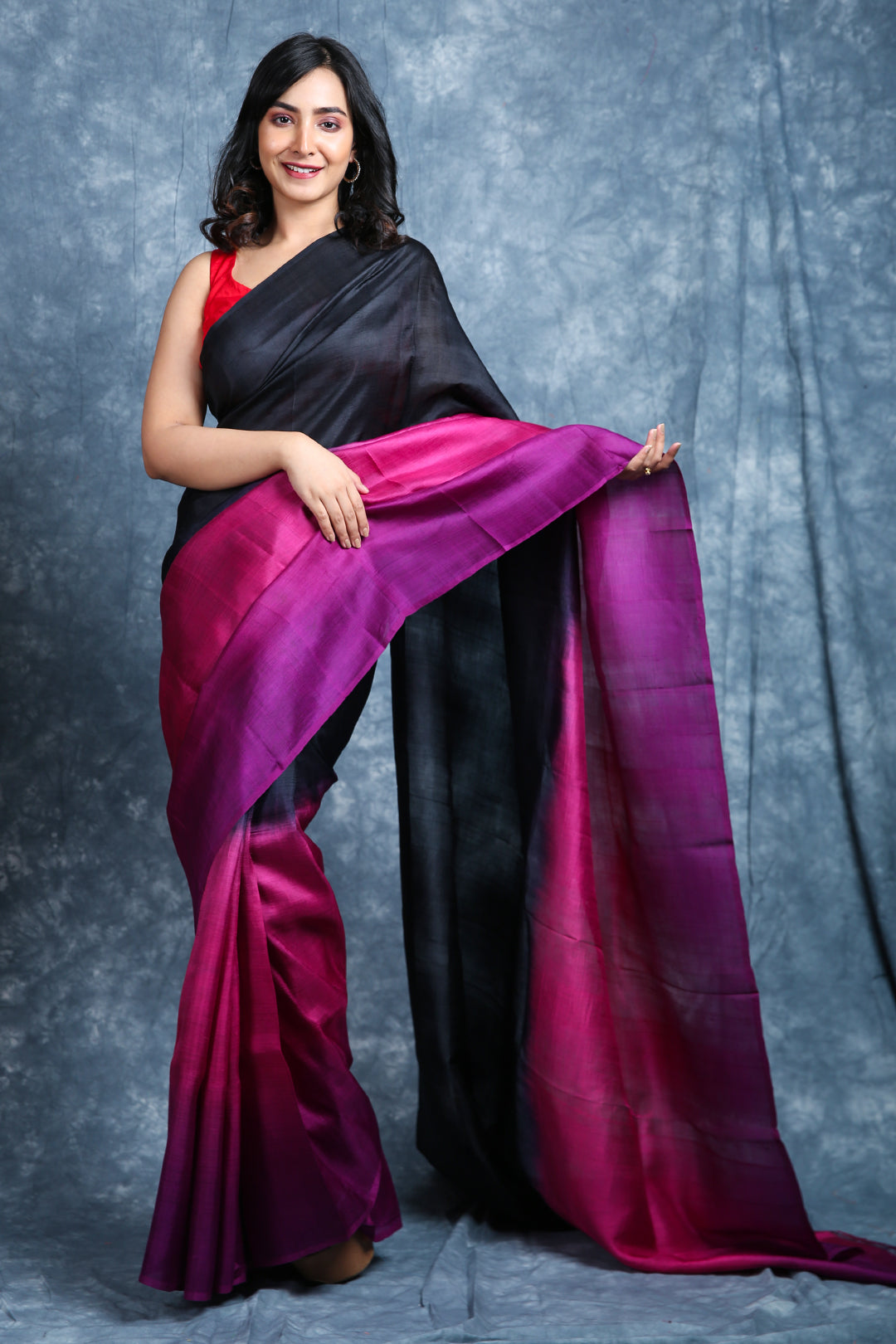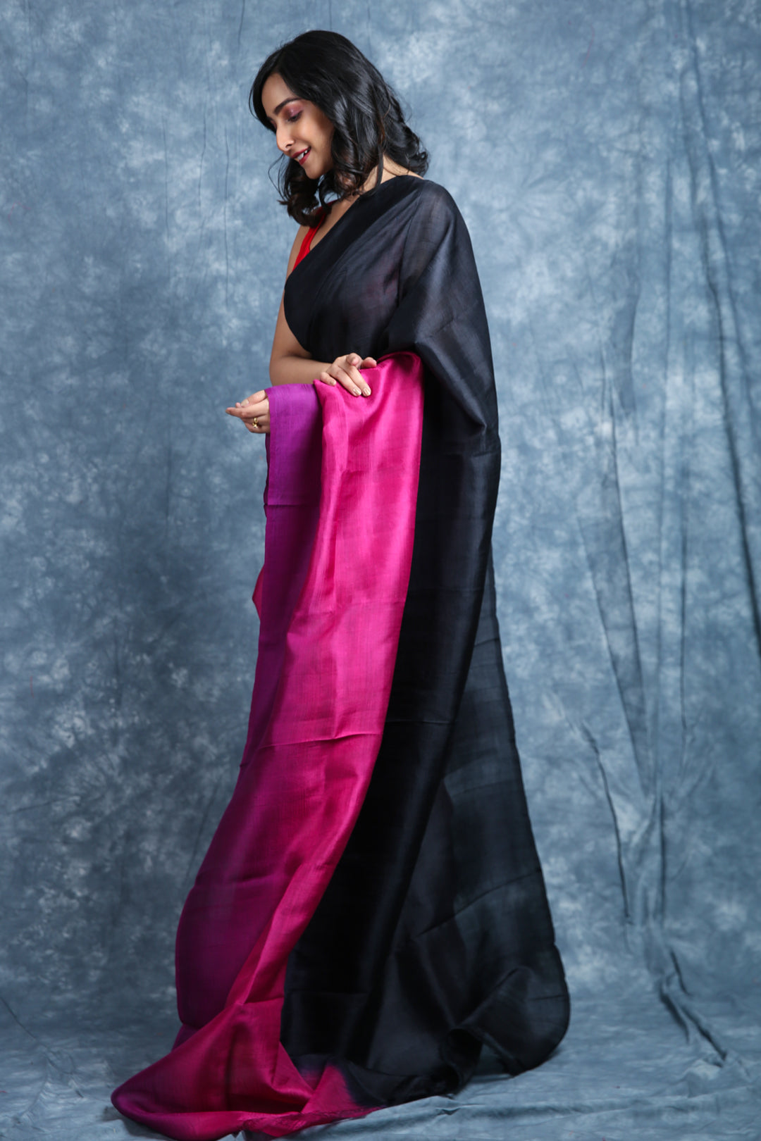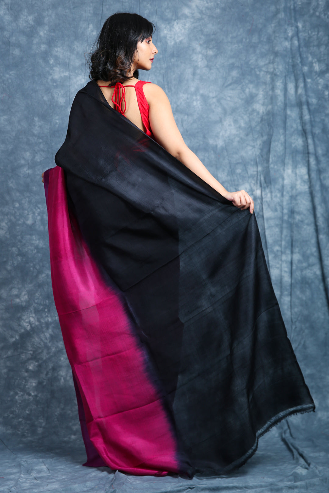 Drape yourself in timeless elegance with this pure silk saree, featuring a striking combination of deep black and rich magenta. The luxurious silk fabric adds a natural sheen and graceful flow, making it perfect for festive occasions, weddings, or evening events. Its bold contrast of colors creates a sophisticated charm, while the smooth texture ensures comfort with style. Pair it with statement jewelry for a classic, head-turning look.