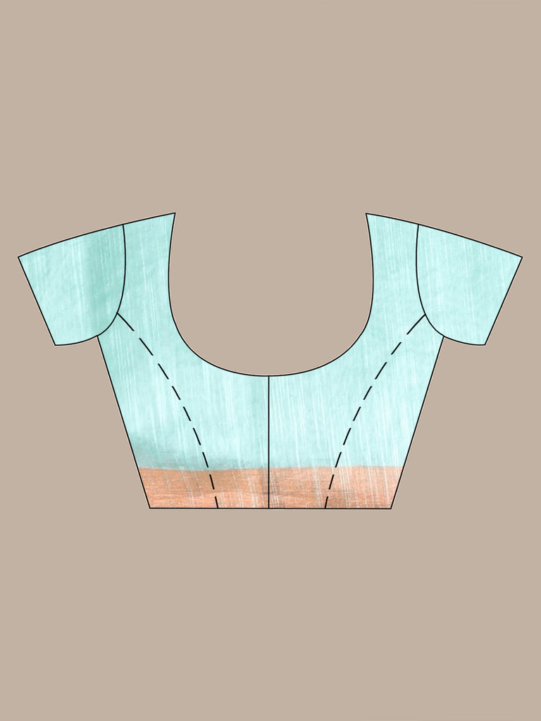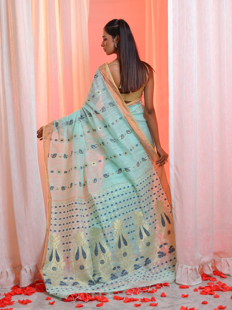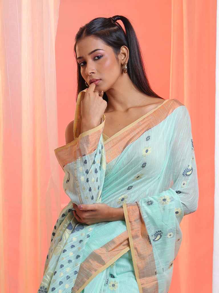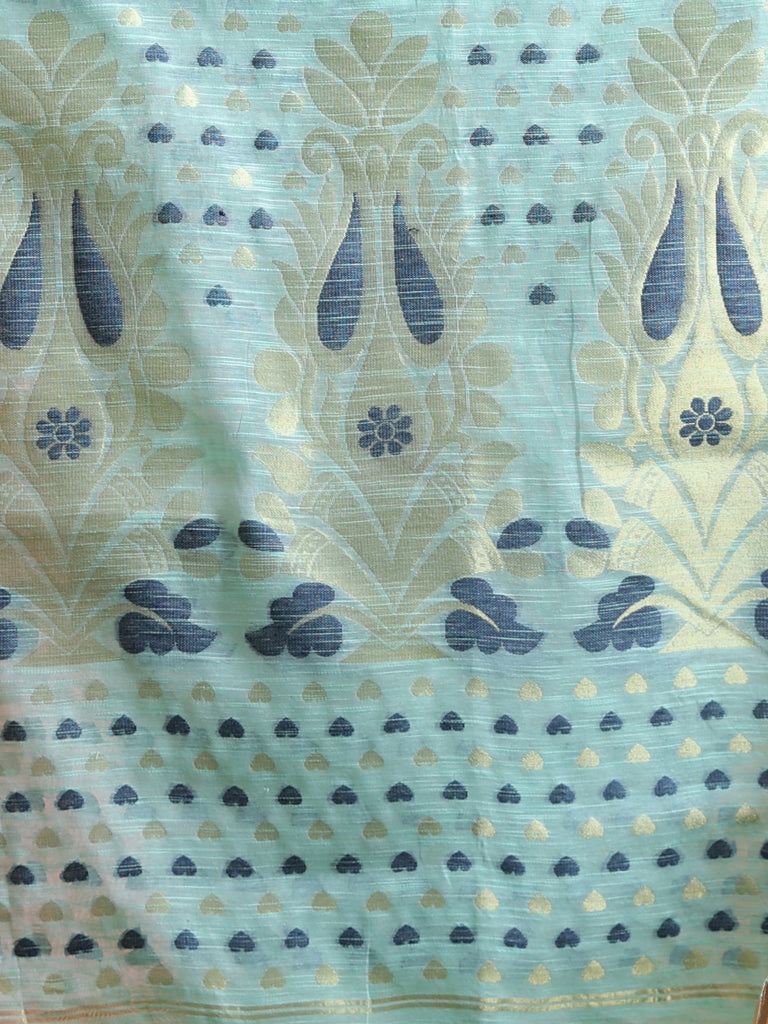Sea Green Cotton Blend Handwoven Saree With Zari Woven Designs