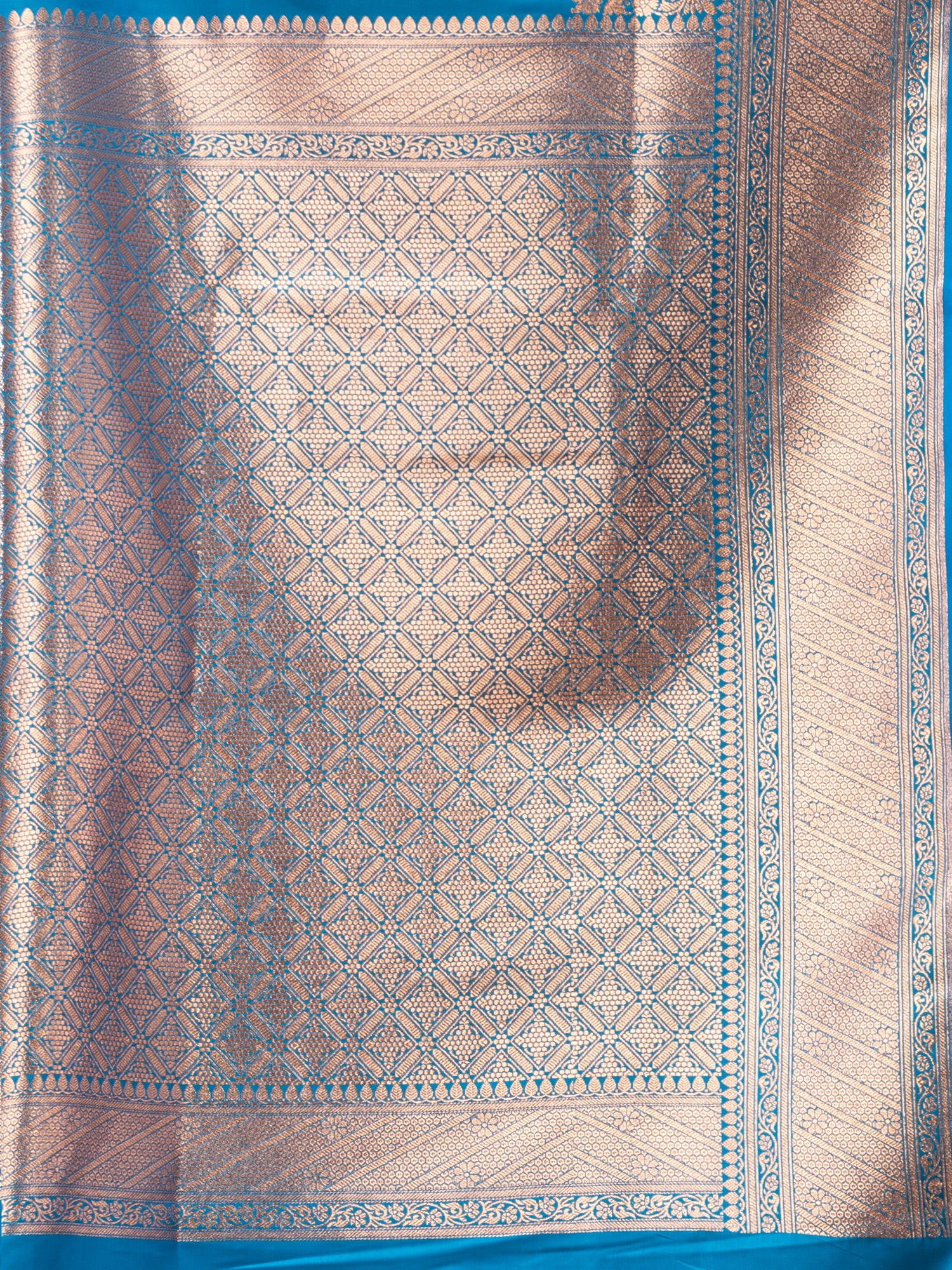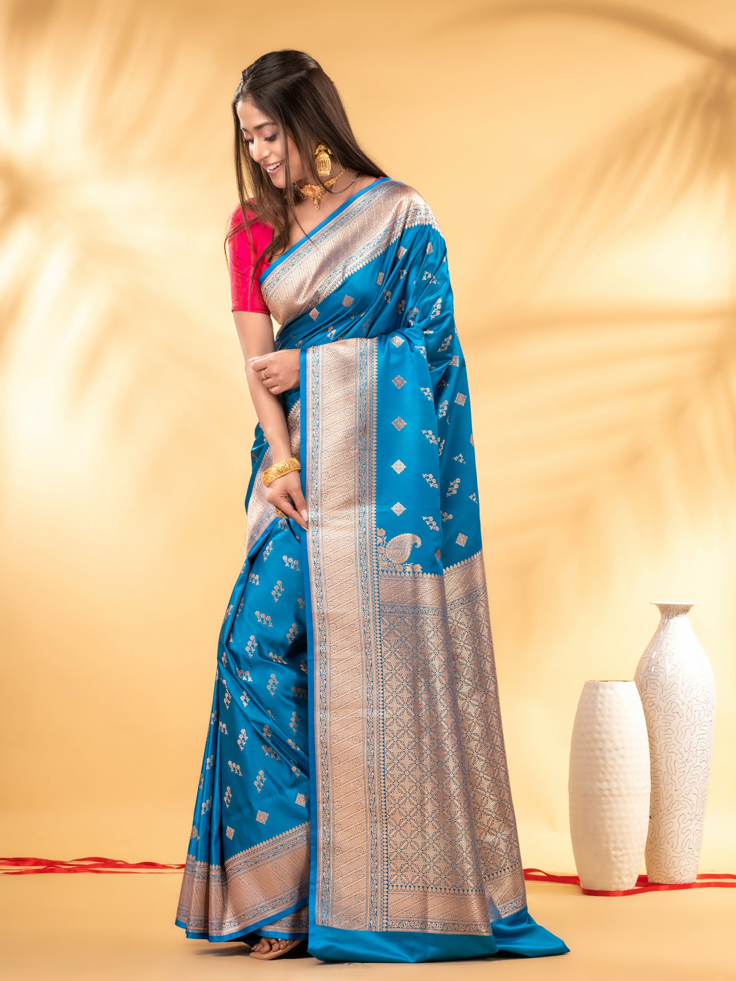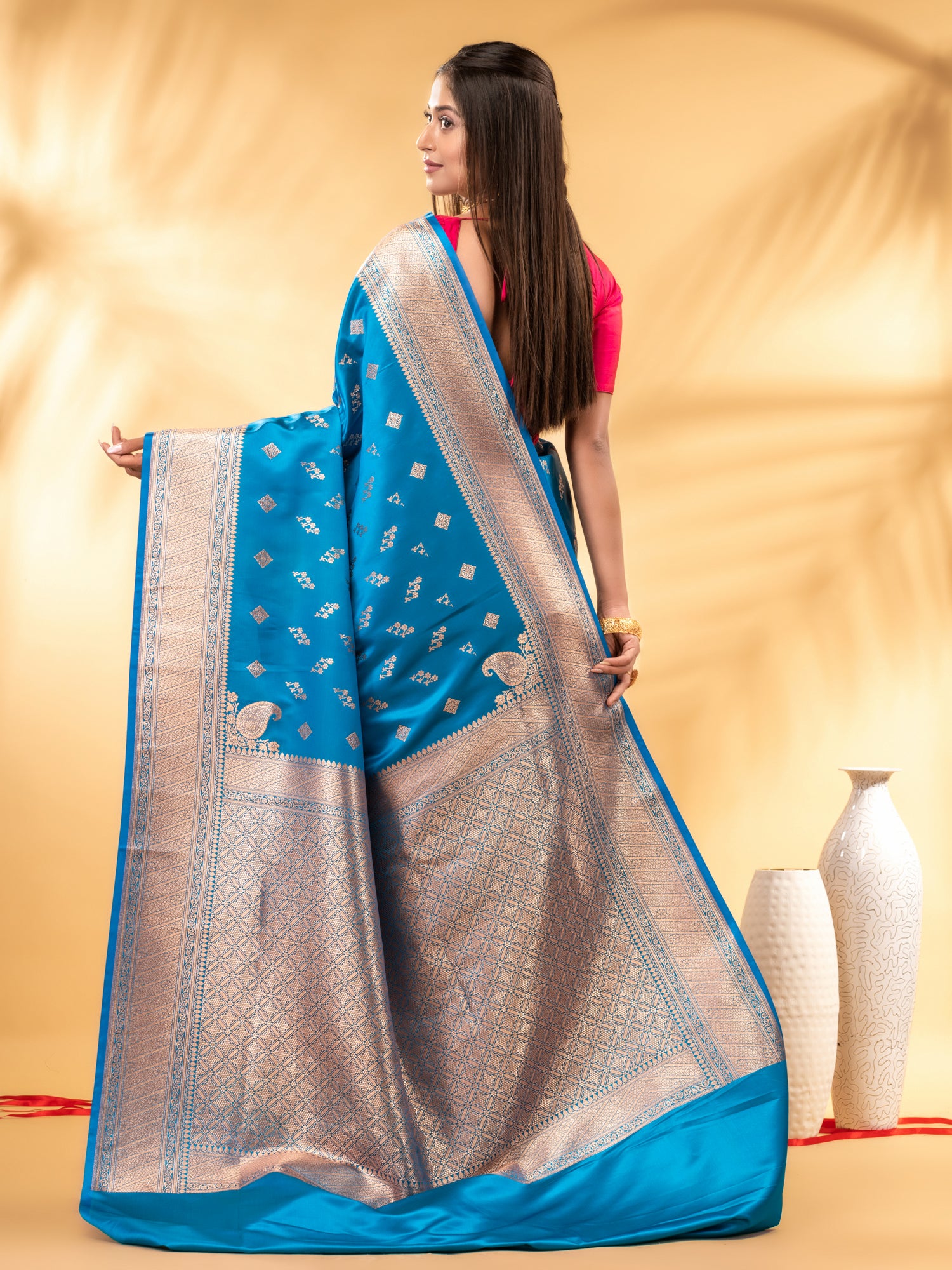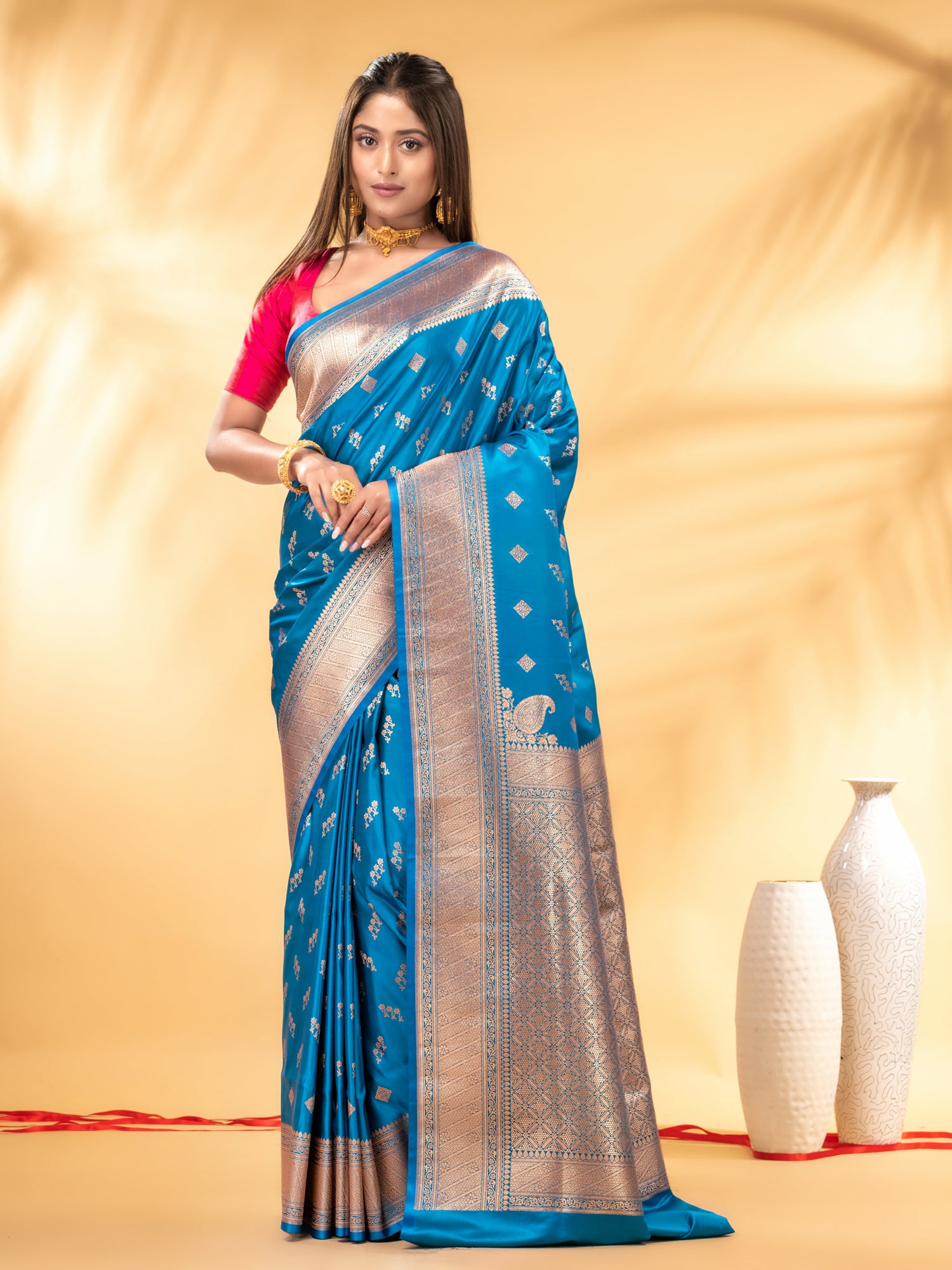 Sky Blue Katan Banarasi Silk Saree with Elegant Gold Zari Weaving