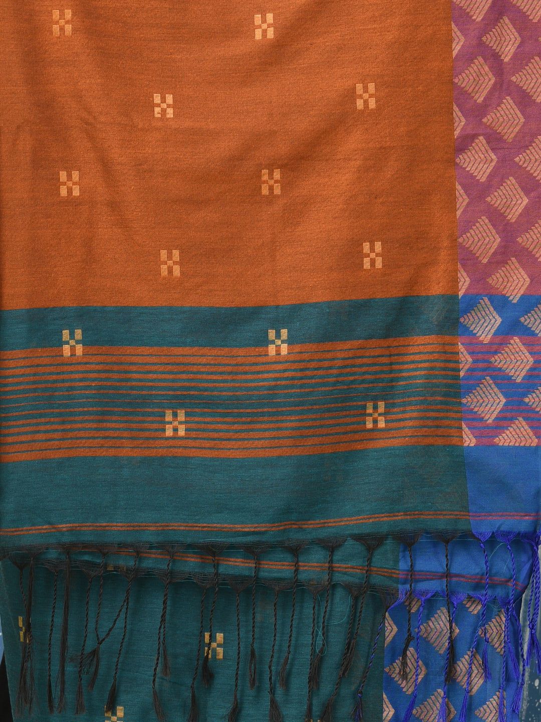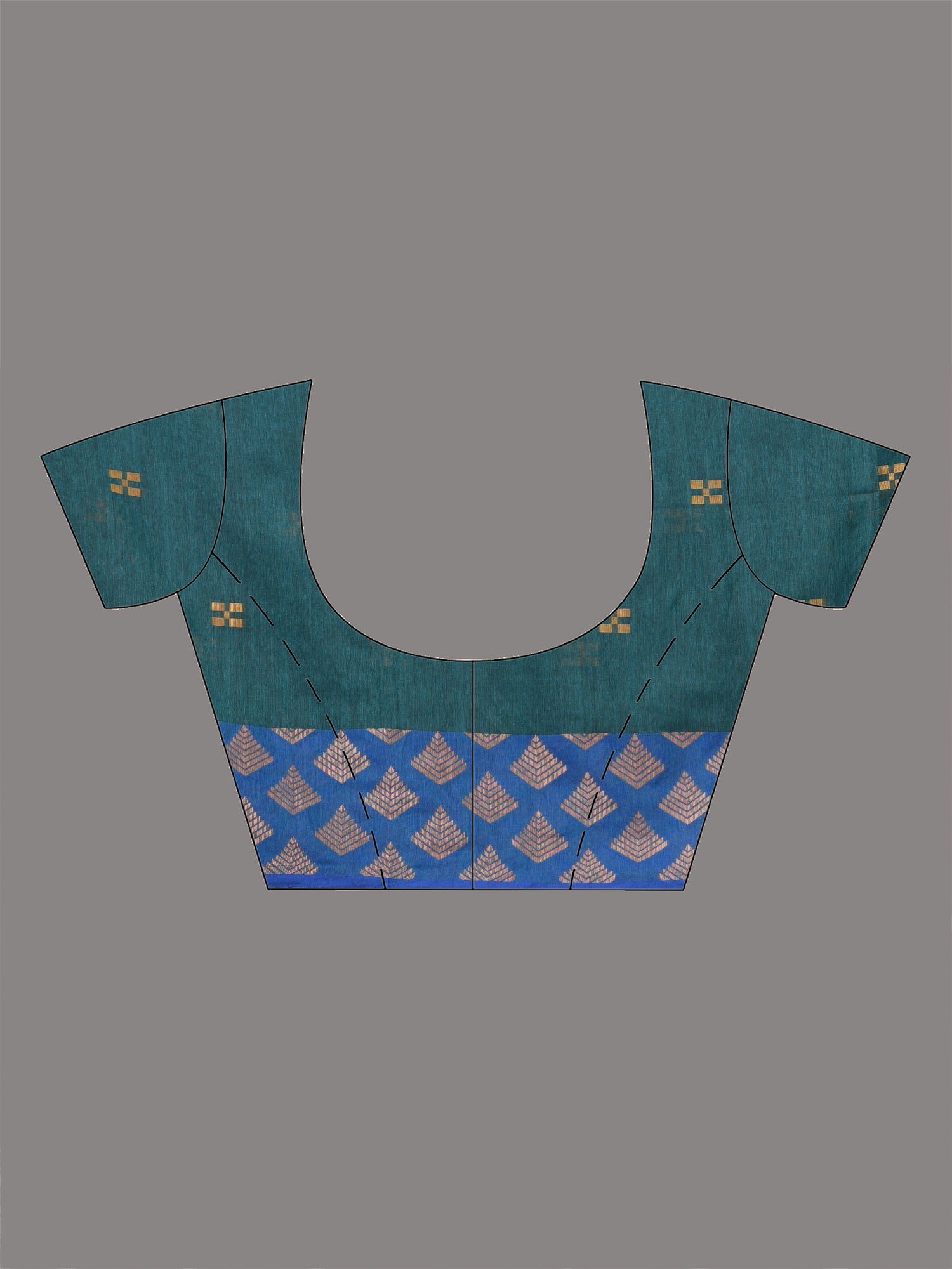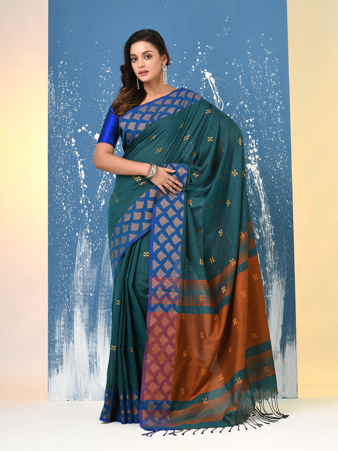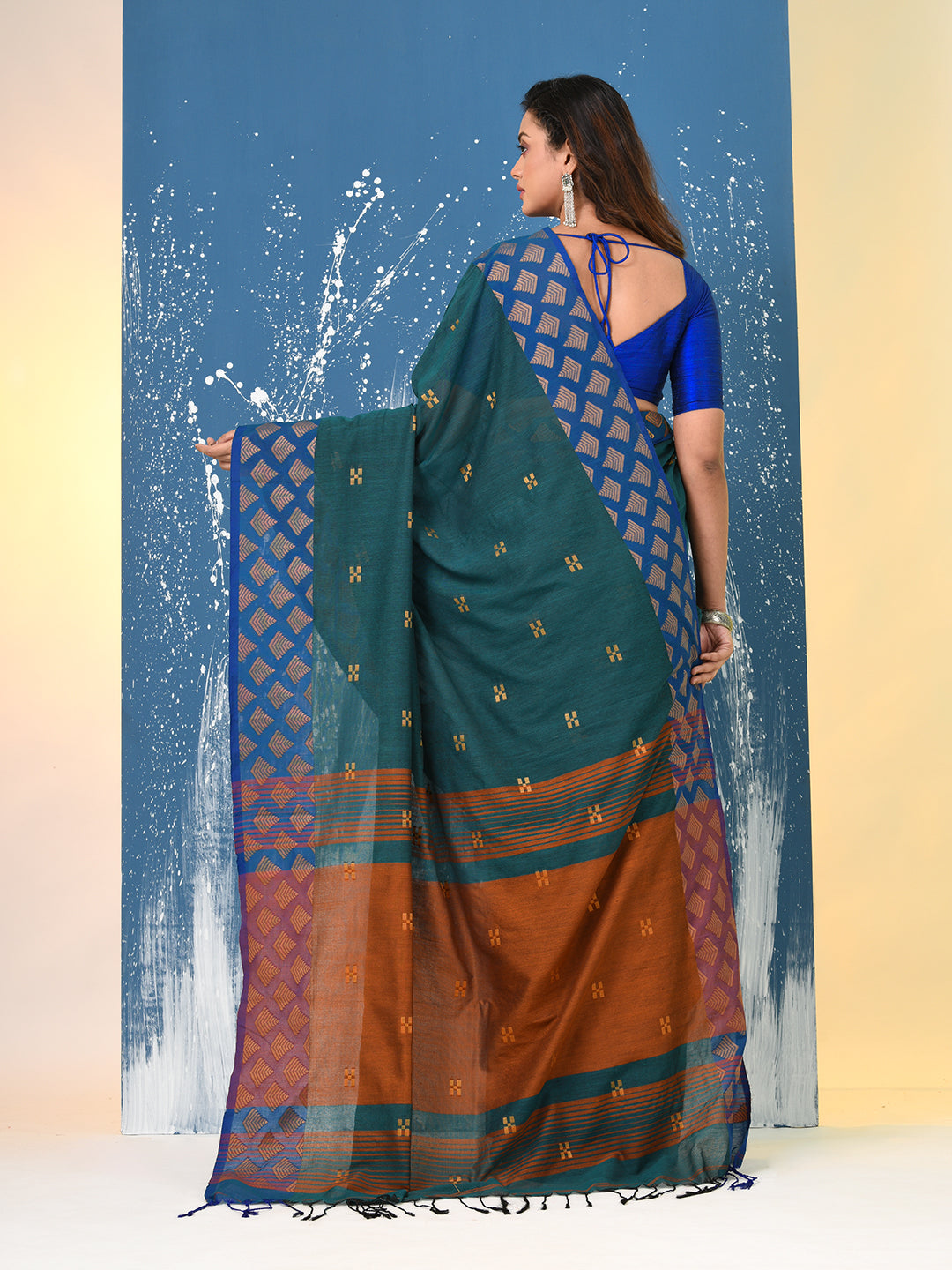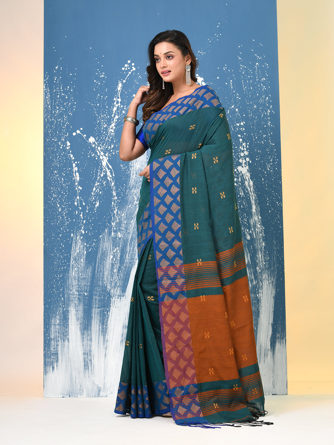 Teal Geometric Motifs Cotton Handspun Soft Saree