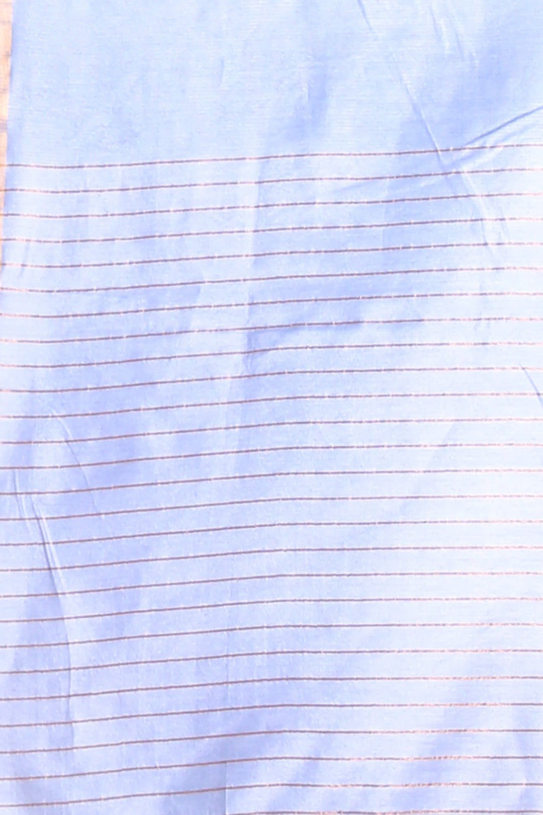 Zari Border Ice Blue Silk Saree With Stripes Pallu