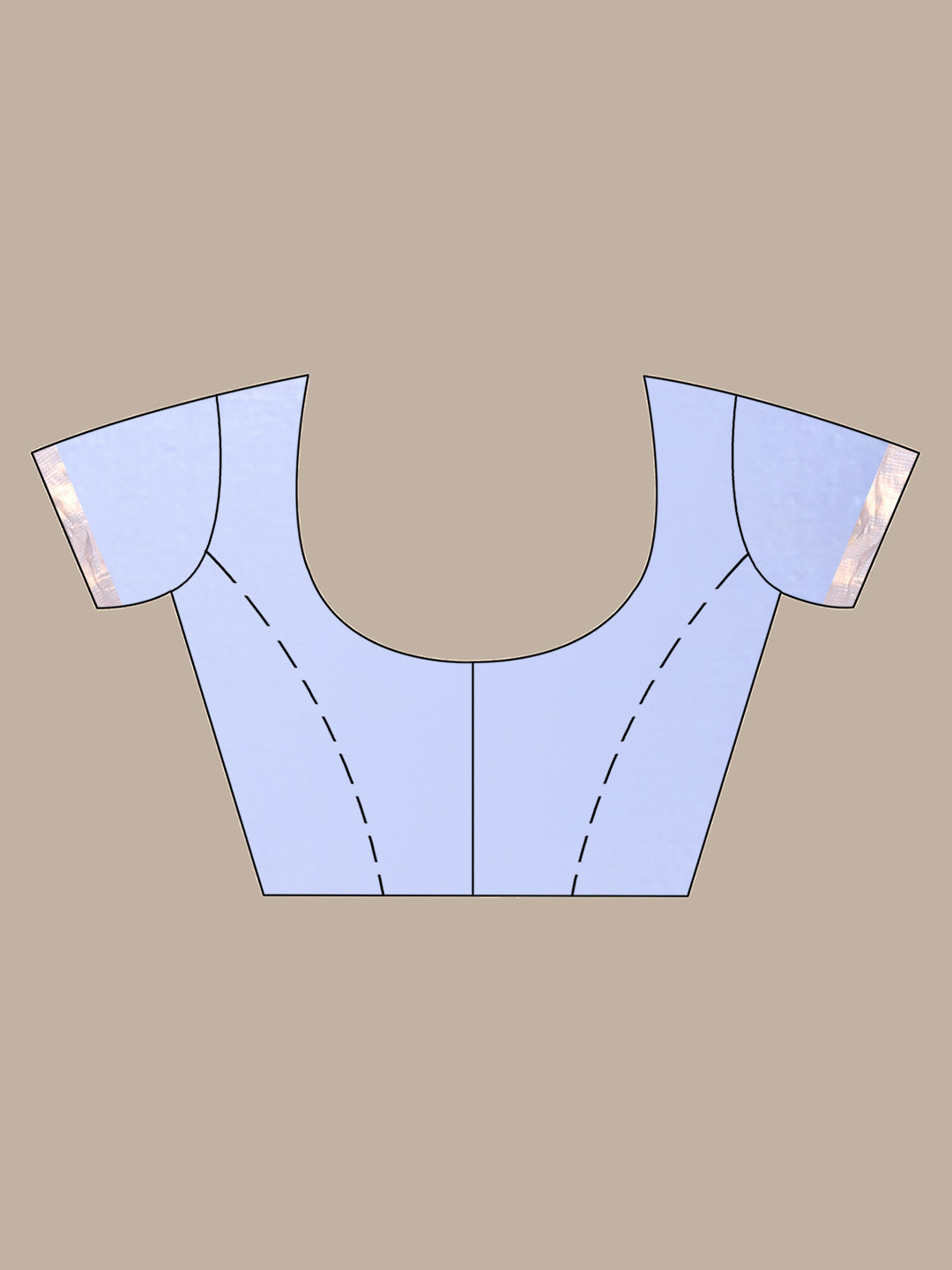 Dainty is what you will look in this ice blue blended cotton saree. It has zari borders with zari striped pallu for a complete look.
