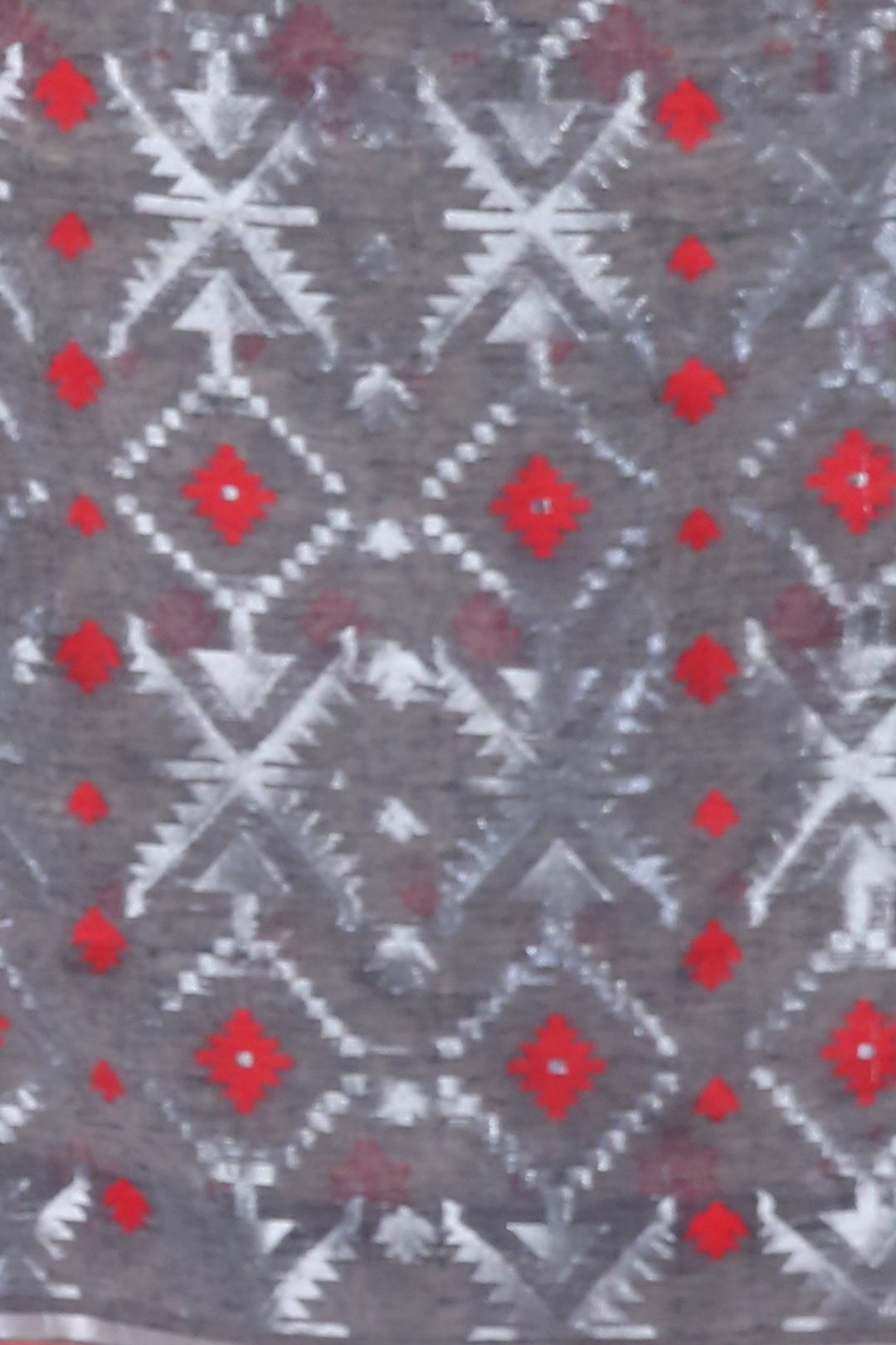 Obtain a beautifully polished look in this beige silk cotton saree, The whole saree has small woven buttas in red and zari. The borders and pallu in charcoal grey are detailed with red and zari to bring the whole look together.