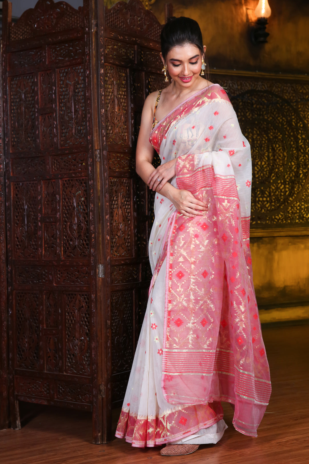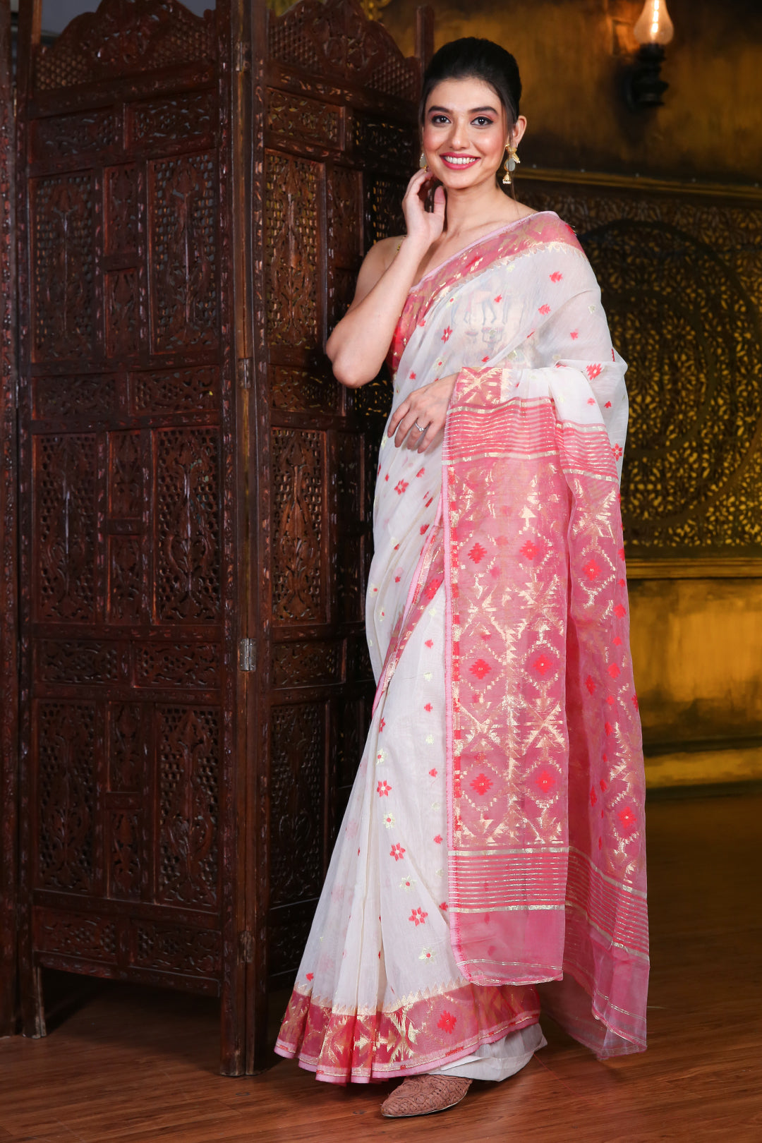 Zari Weaving White Jamdani Saree